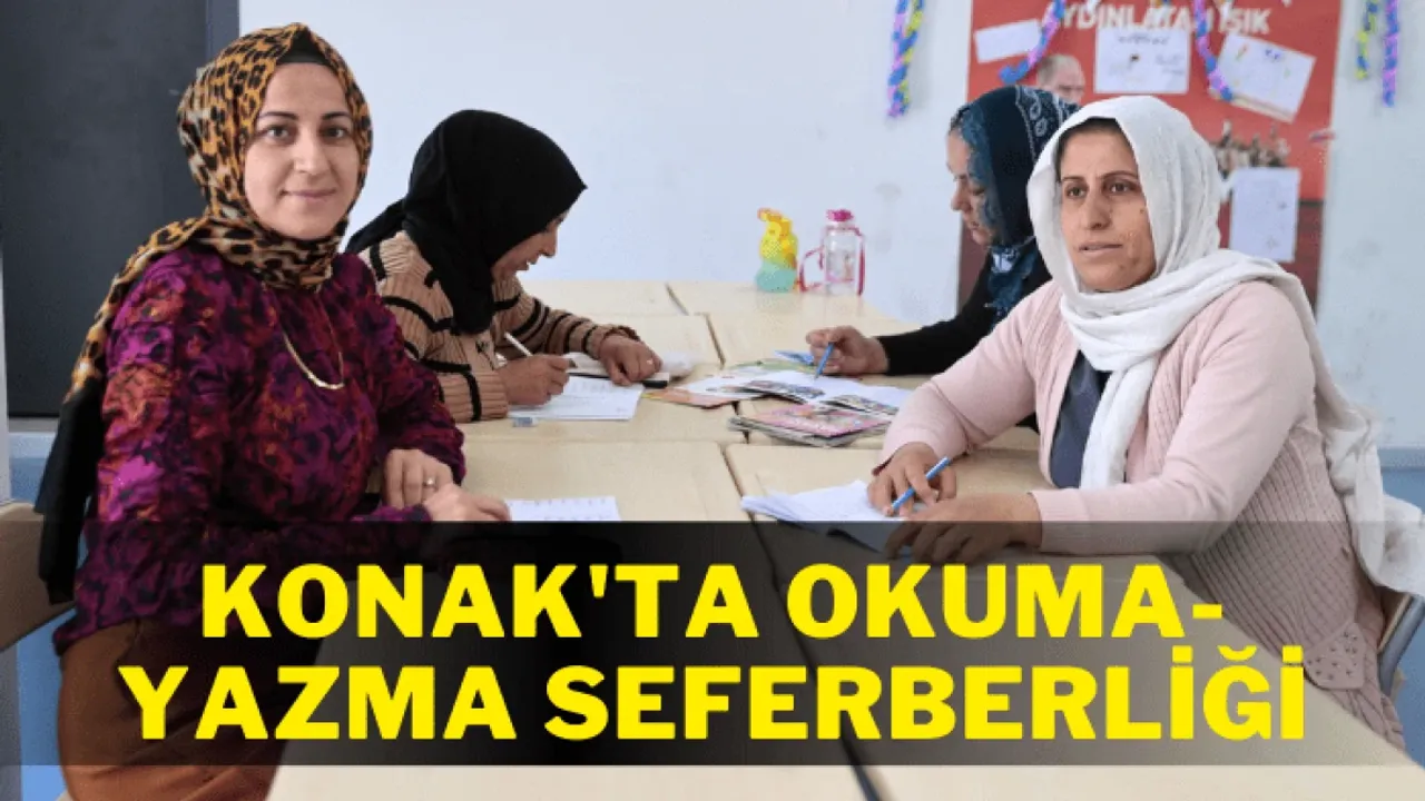 Konak'ta okuma yazma bilmeyen yetişkin kalmamasını amaçlayan Okuma-Yazma Kursu, iki kademeden oluşuyor. Kursun birinci kademesi 160 saat, ikinci kademesi ise 220 saatte tamamlanıyor. Birinci kademede temelden okuma-yazma öğretiliyor. Türkçe, Matematik, Yaşam Becerileri derslerinin de yer aldığı ilk kademeyi başarıyla tamamlayanlar okur-yazar sertifikası almaya hak kazanıyor. Birinci kademeden geçer not alanlar isterlerse ikinci kademeye başvurabiliyor. İkinci kademe programında Türkçe, Matematik, Yaşam Becerileri ve Hayat Bilgisi dersleri okutuluyor. Kurs bitiminde yapılan sınavda başarılı olanlar İlkokul diploması yerine geçen İkinci Kademe Okur-Yazar Belgesine kavuşuyor. Eğitim hayatlarına devam etmek isteyenler, bu belge ile Halk Eğitim Merkezlerinin Açık öğretim Ortaokul bölümlerine kayıt olabiliyor.