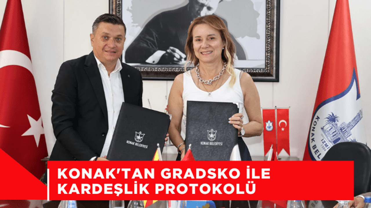 Konak Belediyesi Başkanı Nilüfer Çınarlı Mutlu, Kuzey Makedonya'nın Gradsko Belediye Başkanı Kiro Nackov ve beraberindeki heyetle makamında bir araya geldi. Başkan Mutlu'nun, Gradsko Belediye Başkanı Kiro Nackov, Genel Sekreter Aleksandar Gjorgjievski ve Eğitim Sorumlusu Aleksandar Kocev'i ilgiyle ağırladığı ziyarette, iki ilçe arasında kardeş şehir protokolü de imzalandı. Farklı kentler ile kardeşlik ilişkileri kurarak sosyal ve kültürel ilişkileri geliştirmeyi amaçlayan Konak Belediyesi ve Gradsko Belediyesi arasında imzalanan protokole göre; iki ilçe arasındaki dostluk bağlarının geliştirilmesi, ekonomik, sosyal, kültürel ilişkilerin güçlendirilmesi adına çalışmaların ve projelerin yürütülmesi planlanıyor.