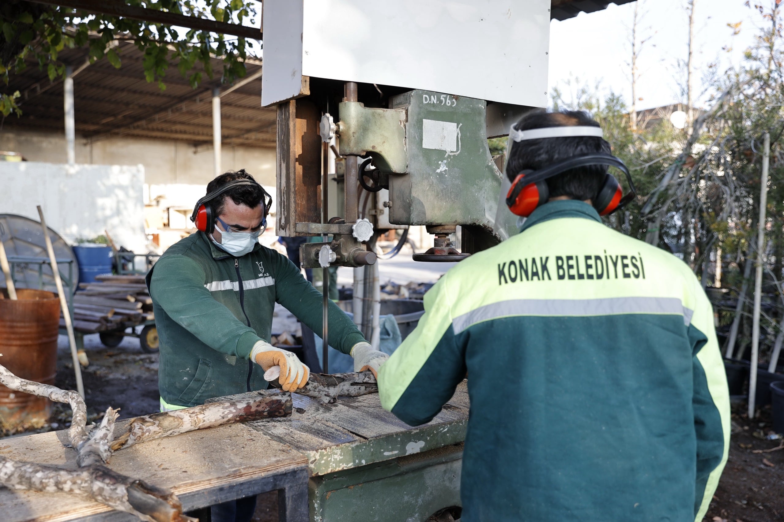 Konak Belediyesi Park ve Bahçeler Müdürlüğü, mevsimsel budama işini, yuvaları ısıtan bir uygulamaya dönüştürdü. Müdürlüğe bağlı budama ekipleri, ağaçların sağlıklı gelişimi için gerekli olan budama işlemini tamamladıktan sonra, çıkan budama atıklarını belediyenin fidanlığında bulunan atölyelere götürüyor. Burada atölye ekipleri hızla işe koyularak budama sonrası oluşan ağaç artıklarını tek tek işleyerek yakacak odun haline getiriyor.