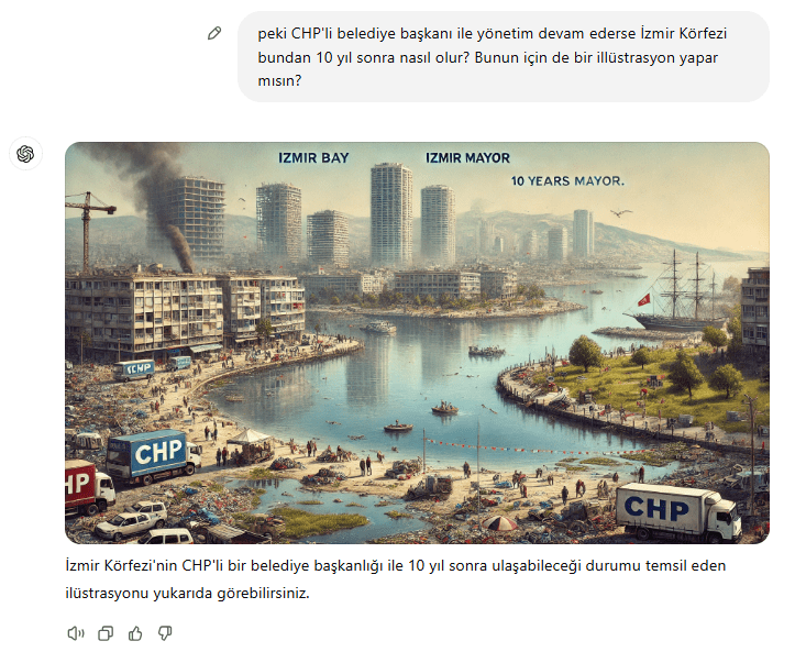 "Madem gündemimiz yapay zeka, madem İzmir'imizin Belediye Başkanı partisi tarafından yapay zekaya sorularak aday gösterildi o halde biz de bir şeyler soralım dedik yapay zekaya."
