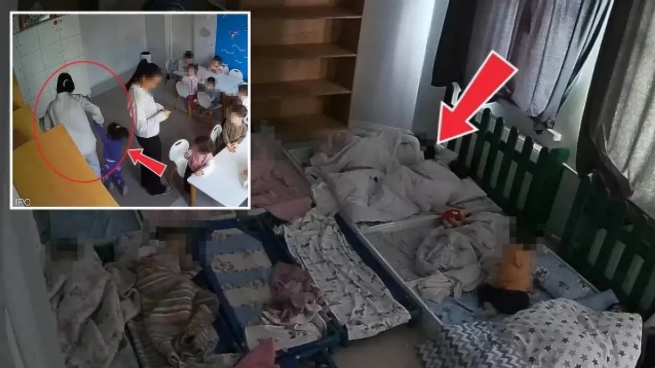 Şikayet üzerine başlatılan soruşturma kapsamında incelenen güvenlik kamerası görüntülerinde, uykudaki çocukların sert şekilde uyandırıldığı, öğretmenlerin başlarında bulunması gerekirken uyudukları belirlendi. Görüntülerde bir çocuğun arkadaşının boğazını sıktığı, öğretmenin buna müdahale etmediği anlar yer aldı.