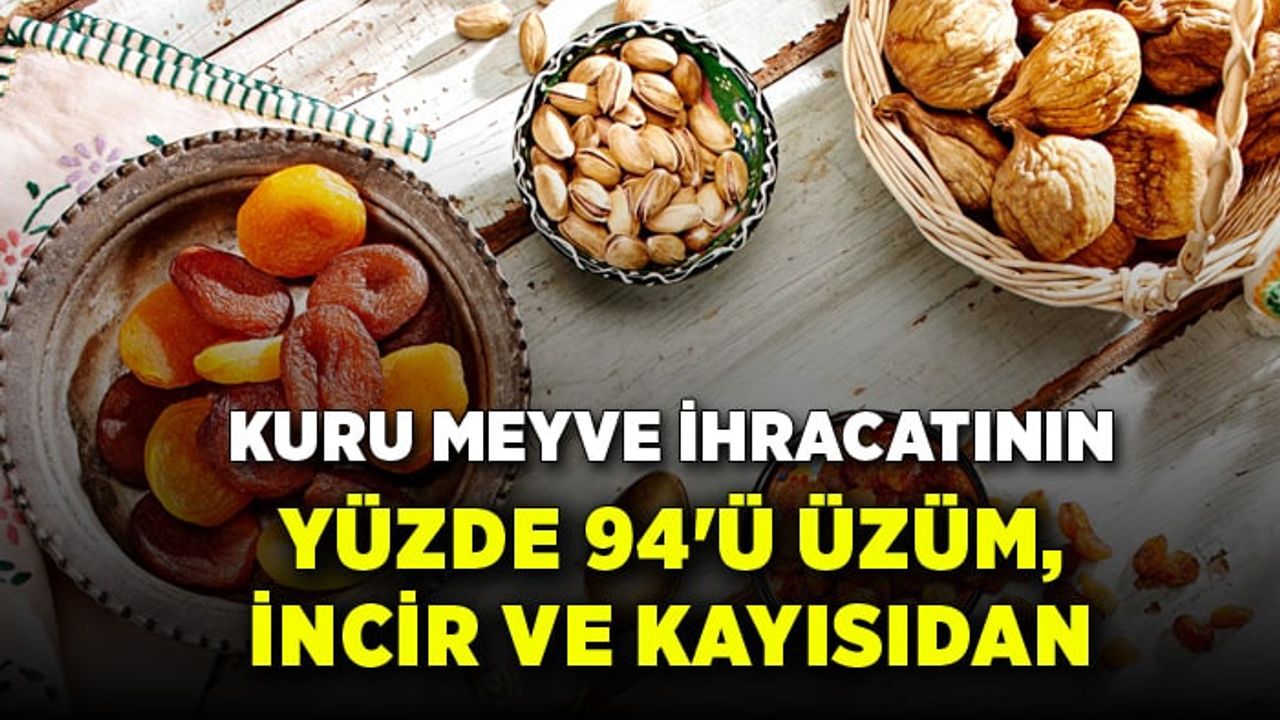 Ege Bölgesi'ndeki kuru meyve ihracatında; çekirdeksiz kuru üzüm, kuru incir ve kuru kayısı ihracatı toplam ihracatın yüzde 94'ünü oluşturdu.