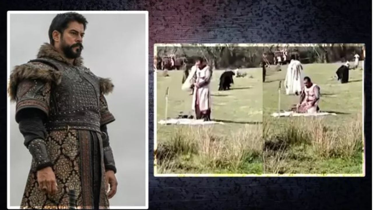 Kuruluş Osman dizisi bu defa set arasındaki görüntülerle gündeme geldi. Dizi oyuncularından birinin set arasında üzerinde Bizans askeri kıyafeti varken namaz kılması dikkat çekti.