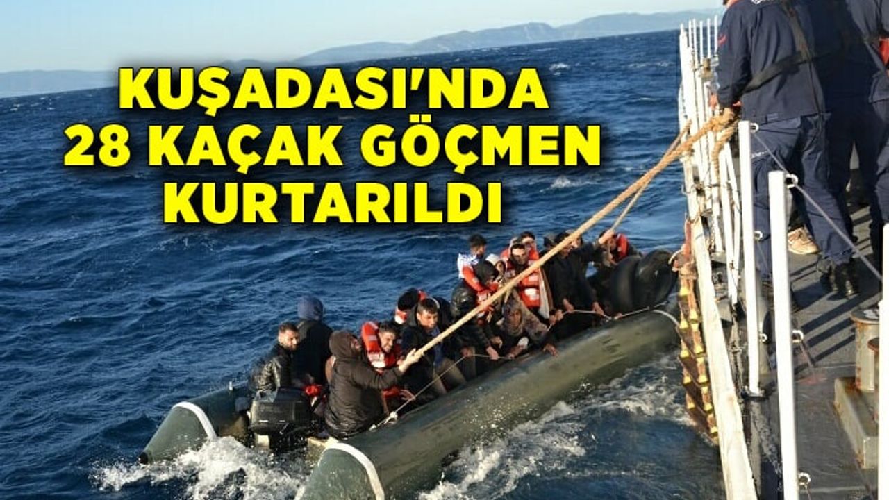 Kuşadası'nda 19'u çocuk 28 kaçak göçmen kurtarıldı