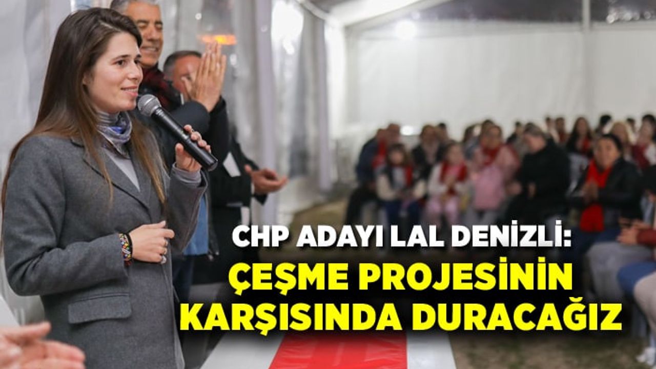 Denizli, buluşmada yaptığı konuşmada, Çeşme Projesi’nin karşısında duracaklarını belirterek, “Çeşme Projesi adı verilen talan projesinin karşısında duracağız. Konu şu an zaten yargıda. Yargının kararını beklemek gerekiyor. Ancak hem benim hem de partimizin bu konudaki tavrı nettir. Tarım arazilerimizin ve doğal güzelliklerimizin betonlaşmasına izin vermeyeceğiz. Bu konuda çevrecilerle de bir araya gelerek görüşlerimi ilettim. Gerek hukuki gerekse idari mücadelemizi vereceğiz” dedi.