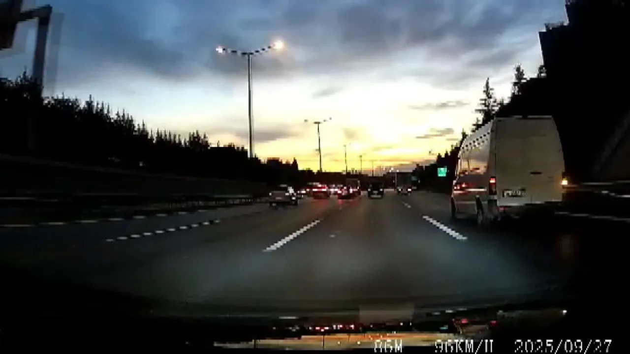GAZİOSMANPAŞA TEM Otoyolu'nda makas atarak ilerleyen otomobil sürücüsü kazaya neden oldu. Otomobilin servis minibüsüne çarptığı kaza başka bir otomobilin araç iç kamerasına yansıdı.
