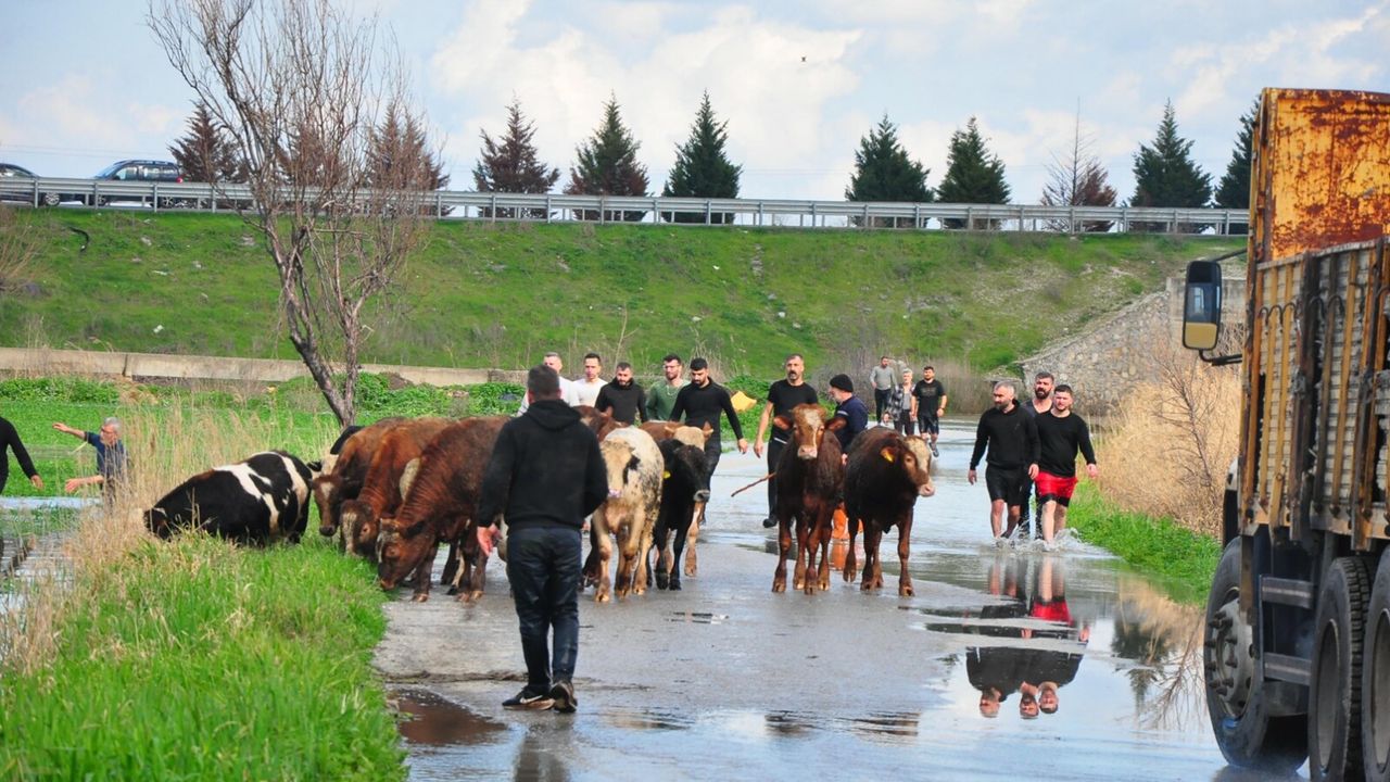 Ekipler çevrede güvenlik önlemi alarak iş makinesiyle çiftliğe ulaştı. Kurtarma çalışmalarına mahalleli de destek verdi. Mehmet Aslan'a ait 17 büyükbaşın bir kısmı kepçeyle, bir kısmı ise ekipler tarafından sudan çıkarıldı. Bölgedeki başka bir çiftlikte mahsur kalan 10 küçükbaş da yapılan çalışmalar sonucu bulundukları yerden alınarak güvenli alana tahliye edildi.