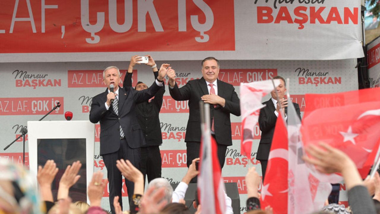 Mansur Yavaş, seçim çalışmaları kapsamında, Ankara'nın Nallıhan ilçesini düzenlenen mitingde konuştu. Yavaş, artık televizyonlarda Ankara'nın konuşulmadığını, farkın ne kadar olacağının konuşulduğunu belirterek, rekor bir oyla seçileceğini söyledi. Kendisi hakkında 'seçimden önce yardımları kesecek' şeklinde propaganda yapıldığını aktaran Yavaş, aksine insani ve İslami bir şekilde bir elin verdiğini hiç kimse görmeden ve esnafı ayakta tutacak şekilde yardımların yapıldığını söyledi. Yavaş, AK Parti adayı Turgut Altınok'un, kendisinin senelerdir gerçekleştirdiği 'Başkent Kart', 'Kantin Desteği' gibi projeleri taklit ettiğini belirterek, "Hem 'projeleri yok' dediler, araştırma yapıp Mansur Yavaş'ın niye sevildiğini anlayınca da Mansur Yavaş'ın projelerini taklit etmeye başladılar. Ben 200 bin aileye doğal gaz veriyorum, 200 bin aileye protein desteği veriyorum. Siz de belediye başkanısınız. Eskiden 'kim ne verirse 5 fazla' derlerdi ya akılları şimdi başlarına geldi. 'Bütün emeklilere 5 bin lira vereceğim' diyor. Ankara'da 1 milyon 100 bin emekli var. Aylık 6 katrilyon tutuyor. Peki şimdi halen de belediye başkanısınız; ben Keçiören'de 50 bin aileye destekte bulunuyorum, onun bulunduğu destek sayısı 5 bin" ifadelerini kullandı.