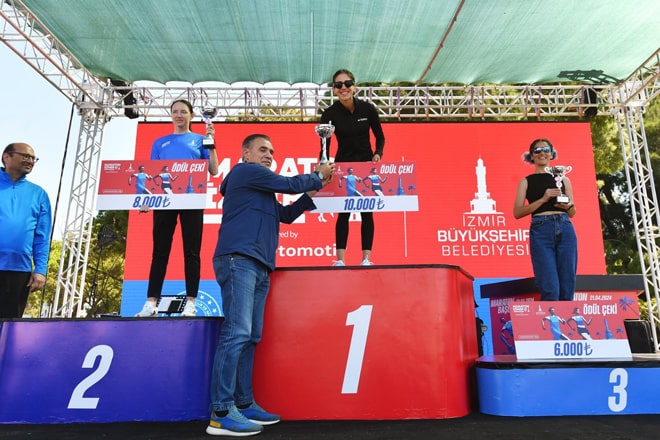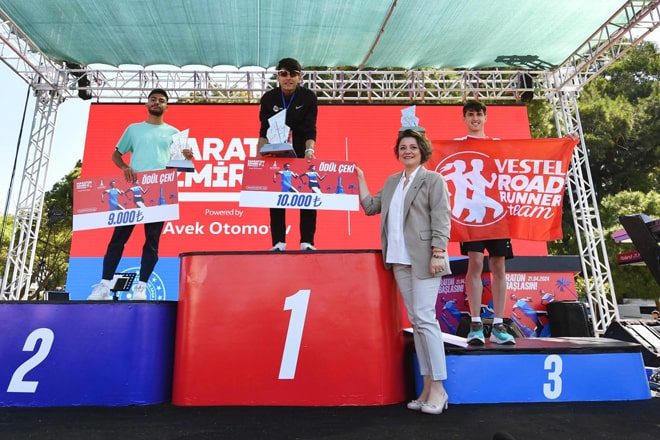 Kültürpark'ta yapılan ödül töreninde 10 kilometrelik koşuda kazanalara ödüllerini İzmir Büyükşehir Belediyesi Meclisi CHP Grup Sözcüsü ve Karabağlar Belediyesi Başkan Yardımcısı Elvin Sönmez Güler, İzmir Büyükşehir Belediyesi Gençlik ve Spor Daire Başkanı Hakan Orhunbilge, İzmir Gençlik ve Spor İl Müdürlüğü Spor Faaliyetleri Şube Müdürü Enver Yılmaz, Ersun Yanal Vakfı Başkanı Ersun Yanal, Avek Otomotiv Yönetim Genel Müdürü Derya Uluğ verdi.