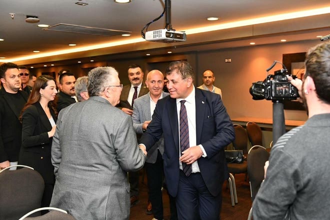 CHP İzmir Büyükşehir Belediye Başkan Adayı Dr. Cemil Tugay; Kemalpaşa Sanayici ve İş İnsanları Derneği (KESİAD), Kemalpaşa Organize Sanayi Bölgesi (KOSBİ), Bağyurdu Organize Sanayi Bölgesi (BAYOSB), Kemalpaşa Ziraat Odası, Kemalpaşa Esnaf Odası, Kemalpaşa Şoförler Odası ile çok sayıda iş insanıyla bir araya geldi. CHP Kemalpaşa Belediye Başkan Adayı Mehmet Türkmen ve CHP Kemalpaşa İlçe Başkanı Ahmet Yılmaz'ın da katıldığı toplantıda, Tugay projelerini anlattı.