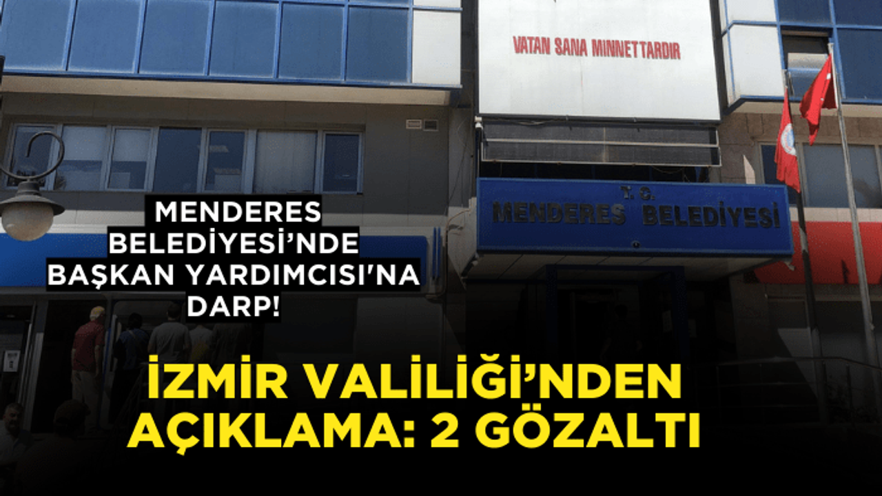 İzmir Valiliği'nden yapılan yazılı açıklamada, "Menderes Belediye Başkanlığı'nda, bugün saat 12.30 sıralarında, 'darp edilen şahıs' ihbarı üzerine ekiplerimiz olay yerine süratle intikal etmişlerdir. Yapılan araştırmada, Belediye Başkan Yardımcısı Rüzgar Sönmez’e yumruk atıldığı iddiasıyla gözaltı işlemi uygulanmıştır. Konuyla ilgili adli tahkikat sürmektedir" denildi.