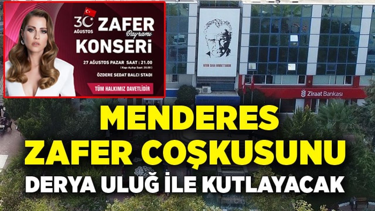 Menderes Belediyesi tarafından 30 Ağustos Zafer Bayramı’nın 101. yıl dönümü kapsamında Derya Uluğ konseri düzenlenecek. 27 Ağustos Pazar günü saat 21.00’da gerçekleşecek etkinlik Özdere Sedat Balcı stadında yapılacak.
