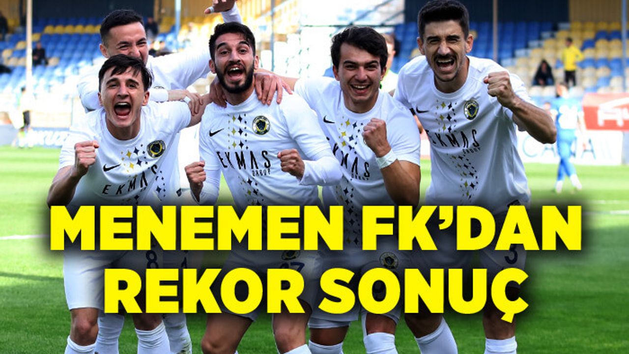 Rakibi karşısında ilk yarıyı 8-0 önde tamamlayarak tek devrede 8 golle rekor kıran sarı-lacivertliler, eşi benzeri görülmemiş bir sonuç aldı. Düşmesi haftalar önce kesinleşen zayıf rakip önünde ikinci yarıda ise frene basıp yalnız 1 gol atan İzmir ekibi 9 farklı galibiyetle evine döndü. Bu sonuçla 48 puana ulaşan Menemen FK cumartesi günü evinde Play-Off'u garatileyen Amed Sportif ile formalite niteliğindeki maçta karşı karşıya gelecek. Teknik direktör Serkan Afacan, Sivas'tan çok önemli bir galibiyetle döndüklerini belirterek, "Küme düşme riskimizi tamamen ortadan kaldırdık. Artık sezonu bitireceğiz. Emeği geçen herkese teşekkür ediyorum" dedi.