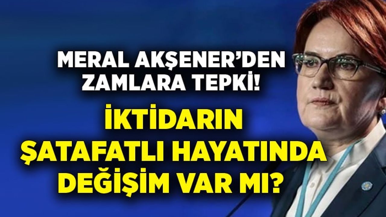 İYİ Parti Genel Başkanı Meral Akşener, sosyal medya hesabından yaptığı açıklamada, "Geçtiğimiz hafta yapılan zamlarla, yeni maaşlar daha yatmadan erimişti. Dün gece itibariyle, eski maaşları da yemeye başladılar. Peki iktidarın şatafatlı hayatında bir değişim var mı? Yok! Cefayı bal eylemek millete, sefasını sürmekse saray ve şürekâsına…" ifadelerini kullanarak zamlara tepki gösterdi.