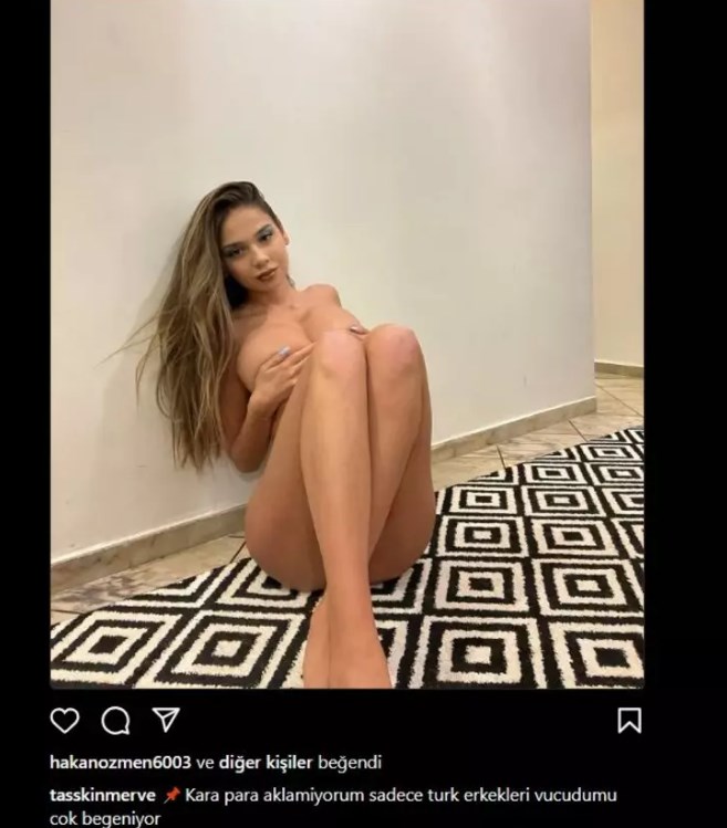 Çıplak halde pozunu "Kara para aklamıyorum sadece Türk erkekleri vücudumu çok beğeniyor" notuyla paylaşan fenomen olay oldu.