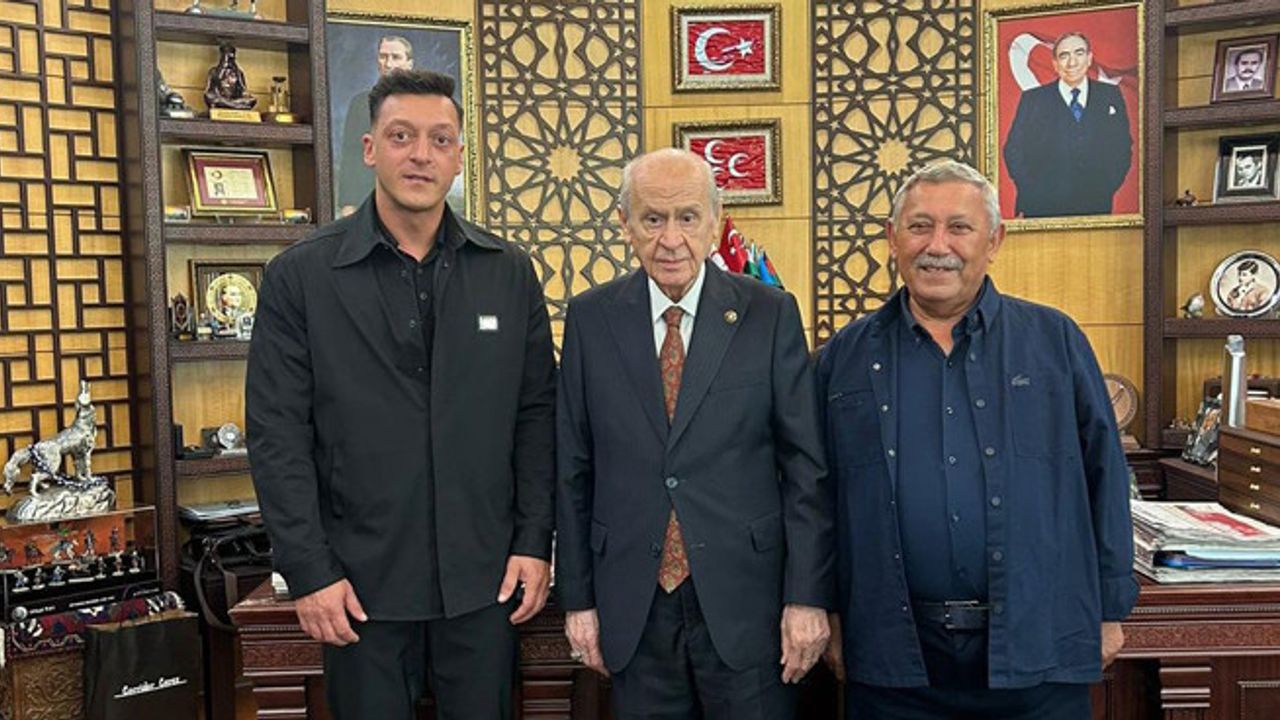 Eski futbolcu Mesut Özil, MHP Genel Başkanı Devlet Bahçeli'yi makamında ziyaret etti. Özil, MHP Lideri Bahçeli ile olan fotoğrafını sosyal medya hesabından paylaşarak, "Sayın Genel Başkanım Devlet Bahçeli'yle güzel sohbet" dedi.