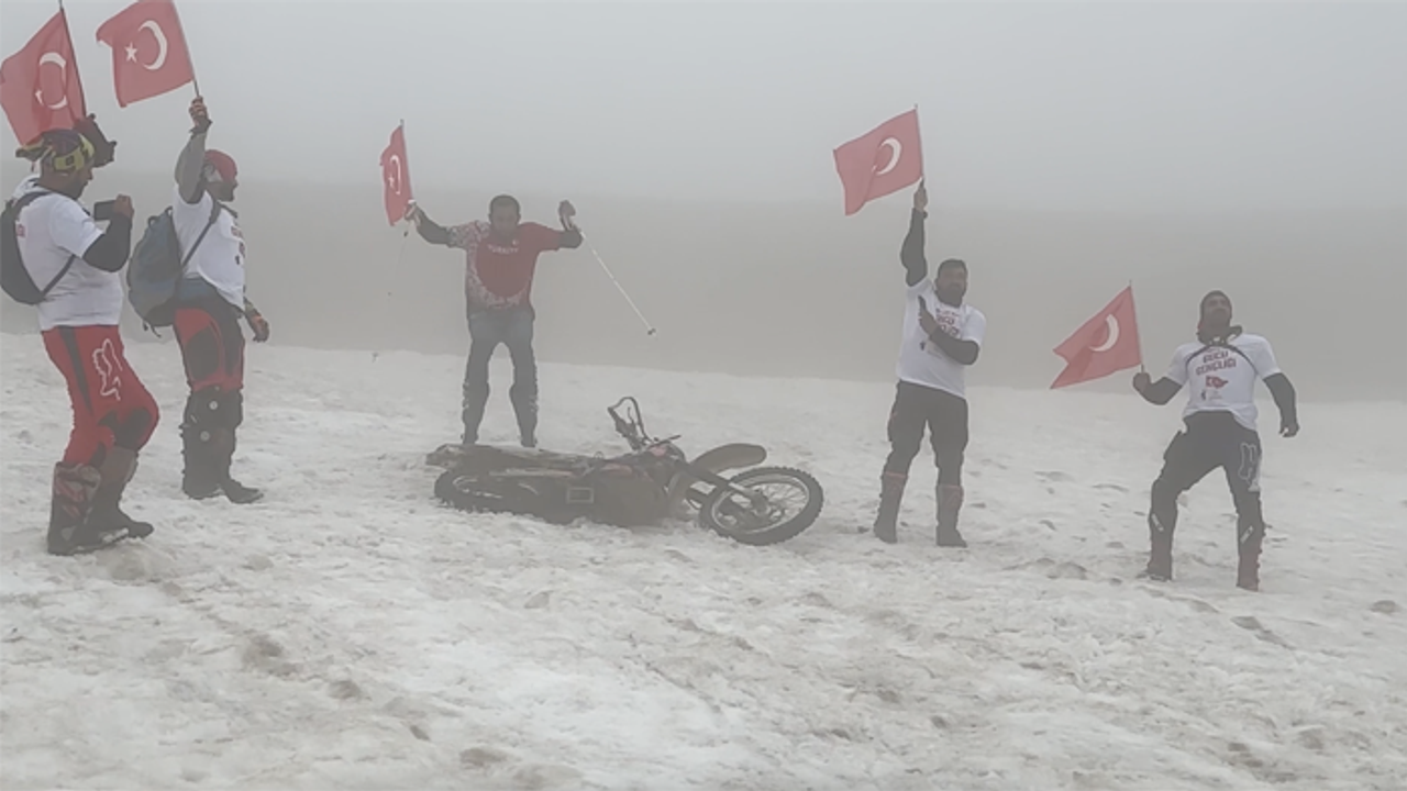 Erzincan Enduro Motosiklet Kulübü üyeleri Ali Dağhan Emre (35), Recep Sulu (38), Özkan Arduç (38), Necmi Mengüç (36), Atilla Köksal (36), Meriç Yeter (38) ve Canser Atila (35), 15 Temmuz Demokrasi ve Milli Birlik Günü etkinlikleri kapsamında Ergan Dağı'na tırmandı. Motorlarına taktıkları Türk bayrakları ile 3 bin 300 rakımlı zirveye çıkan grup, burada Türk bayrağı açtı. Grup, karlı kaplı zirvede şehitler için saygı duruşunda bulunduktan sonra motosikletleriyle gösteri yaptı.