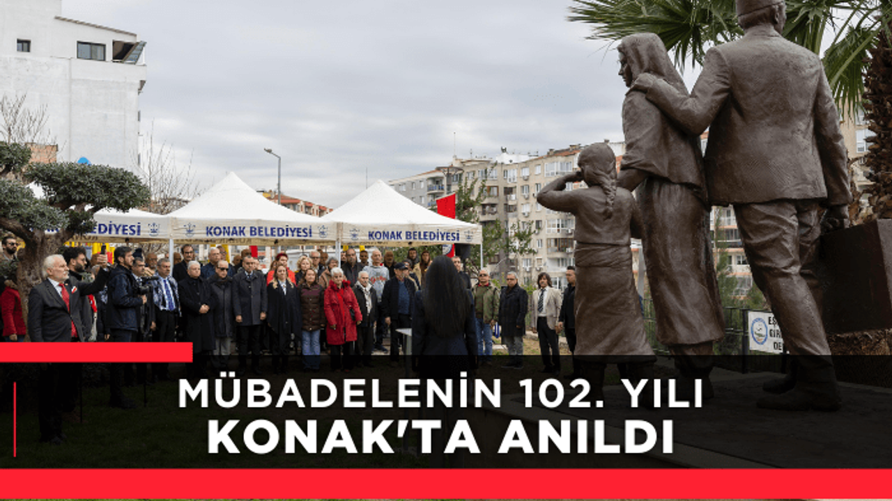 102 yıl önce imzalanan ve Ege'nin iki yakasında ailelerin yerlerini, yurtlarını terk etmek zorunda kalmasına sebep olarak büyük acılar yaşatan Nüfus Mübadelesi, Konak'ta anıldı. Mübadele Anıtı önünde düzenlenen törene Konak Belediye Başkanı Nilüfer Çınarlı Mutlu, CHP Konak İlçe Başkanı Ozan Ali İlgazi ve yönetimi, Konak Kaymakamlığı Yazı İşleri Müdürü Mehmet Aksoy, Balkan, Rumeli ve Ada Türkleri Dernekleri başkan ve temsilcileri, Konak Belediyesi Meclis Üyeleri, muhtarlar ve mübadil aileleri katıldı. Törende, mübadele sebebiyle yaşanan acıların yanı sıra mübadillerin mücadele, özlem ve dayanışma dolu hayatları da hatırlandı.
