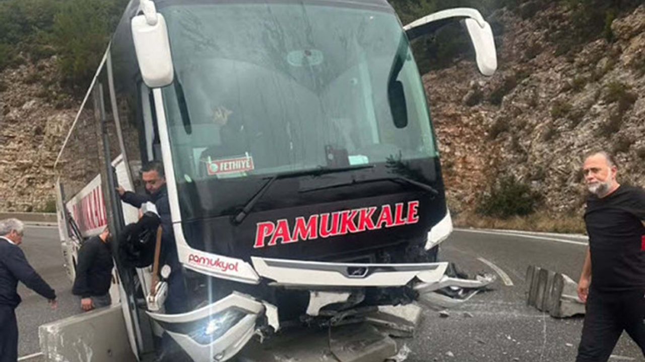 Kaza, saat 13.00 sıralarında Muğla- Akyaka karayolu Sakar Geçidi'nde meydana geldi. İ.H.T. yönetimindeki 35 YS 236 plakalı Pamukkale firmasına ait yolcu otobüsü, yağmur nedeniyle kayganlaşan yolda şoförünün direksiyon kontrolünü yitirmesi sonucu beton bariyere çarptı. Kazada 5 yolcu yaralanırken, ihbar üzerine bölgeye sağlık ve jandarma ekipleri sevk edildi. Sağlık ekipleri tarafından ilk müdahalesi kaza yerinde yapılan yaralılar, çevre hastanelere kaldırıldı. Tedaviye alınan yaralıların sağlık durumunun iyi olduğu öğrenildi.