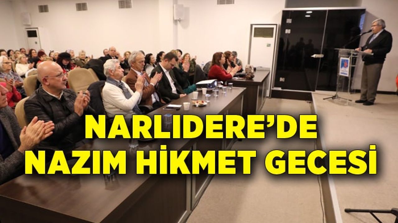 Narlıdere Belediyesi, evrensel değerimiz Nazım Hikmet’i ölümsüz eserleriyle andı. Nazım Hikmet’in 121.yaşında, Narlıdere Belediyesi Atatürk Kültür Merkezi’nde (AKM) gerçekleştirilen etkinlikte, usta şairin dünyaya mal olan şiirleri Narlıdereliler ile buluştu. Narlıdere Belediyesi ve'Şiir Kalbimizde, Şiir, Edebiyat ve Kültür Platformu'nunişbirliği ile gerçekleştirilen etkinliği Narlıdere Belediye Başkanı Ali Engin de takip etti.Mavi Gözlü Dev’in en sevilen eserlerinin Doğa Eryarar’ın gitar dinletisi eşliğinde hayat bulduğu gece,vatandaşlardan büyük alkış aldı.