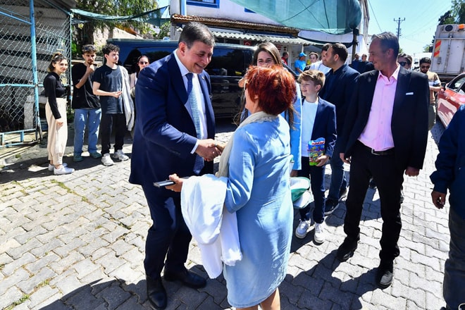 Reisdere Mahallesi'nde de halkla buluşan Başkan Tugay, sorunları yurttaşlardan dinleyip, yerinde görmek için mümkün olduğunca ilçeleri ziyaret ettiğini vurguladı. Başkan Tugay, "Gördüğümüz sevginin ve ilginin hakkını ödeyemeyiz. Çeşme, İzmir'in gözbebeği. Marka bir yer. İzmir'in bütününe olduğu gibi buraya da çok iyi bakmamız lazım. Gelecek iki yıl içerisinde yapacağımız çalışmalarla ciddi bir fark göreceksiniz. Sizlerin desteği bizim için çok önemli. Seçimde bize güçlü bir destek verdiniz. Bunun karşılığını mutlaka ödemeliyiz. Yoksa mahçup oluruz. Ayrıca güzel çocukların hatırı da var. Önce İzmir sonra da tüm Türkiye çok daha iyi olacak. Bizim görevimiz bu. Bunun için seçildik."
