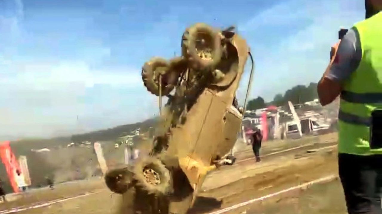 Sapanca Belediyesi adına yarışan Sapanca Off-Road Kulübü üyeleri Pilot Muhammed Ali Yılmazer ve Co-pilot İsmail Öztaş’ın bulunduğu araç, dün gerçekleştirilen etapta yarış sırasında parkurda takla attı. Aracın pilotu taklaya rağmen ilerlemeye çalıştı, ancak arıza sebebiyle durmak zorunda kaldı. Araçtaki 2 sporcu da kazadan yara almadan kurtuldu. Kaza anı kameralara yansıdı. Görüntülerde parkurdan geçen arazi aracının yerden havalanması ve ön kısmı ile yere çakılması sonrası takla atarak tekrar düz durması yer aldı.