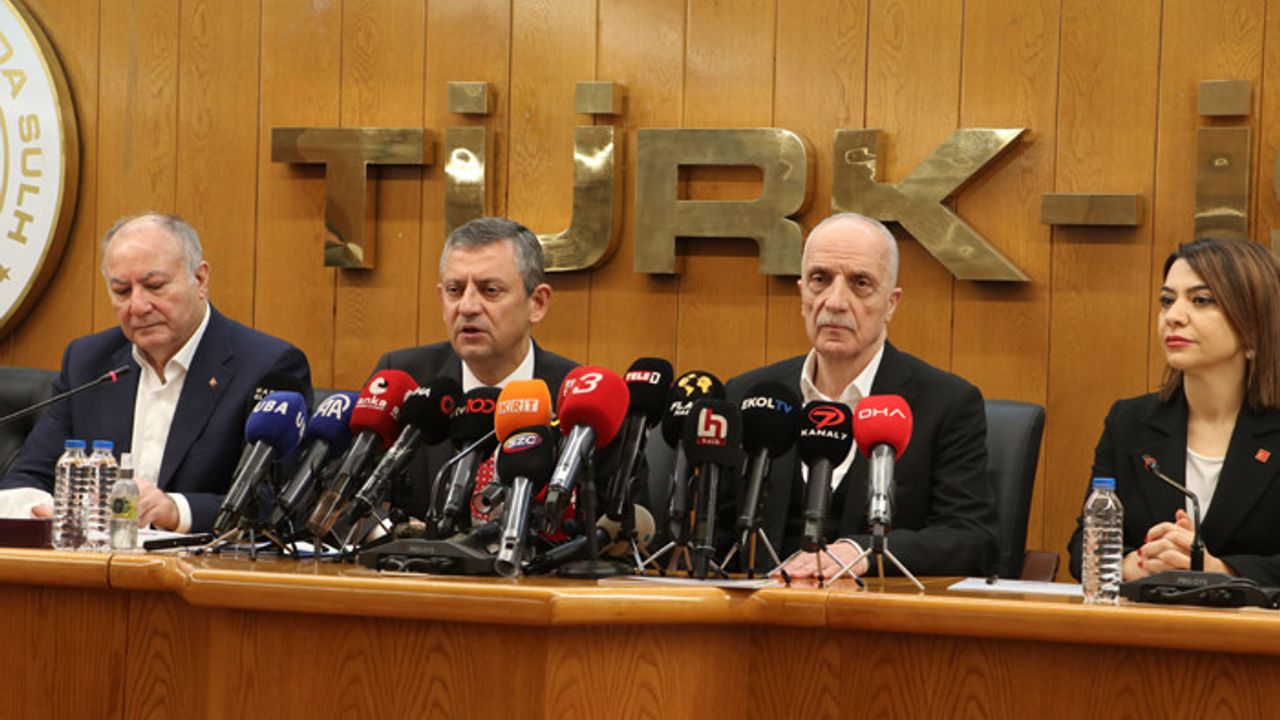 Türk-İş'in 24 Aralık'ta gerçekleştirilen Asgari Ücret Tespit Komisyonu'na katılmamasını memnuniyetle karşıladıklarını dile getiren Özel, "Haberi duyduğumuzda ilk tepkimizi kamuoyu ile paylaşmıştık. Ardından bugün sabah, saat 10.30’da Olağanüstü Merkez Yönetim Kurulu Toplantısı yaptık. Orada aldığımız bir dizi kararla işçi sendikalarını Türk-İş’ten başlayarak ziyaret etmeyi, düşüncelerimizi onlarla paylaşmayı uygun gördük. Milletvekillerimizi saat 14.00’te Meclis Genel Kurulu’na sokmayarak onları parti genel merkezinde toplayarak ‘Bu asgari ücrette biz Meclis’te yokuz’ dedik. Yaptığımız görüşmede de milletvekillerimiz, şu anda 100 milletvekilimiz Ankara’da yöneticilerimizle birlikte asgari ücretli neredeyse orada. Ben de az önce buraya gelirken bir pazaryerine uğrayarak, orada asgari ücretliyle, memur emeklisiyle, Bağ-Kur emeklisiyle, işçi emeklisiyle konuştum. Halinden memnun olan bir kişi yok. ‘Asgari ücret 22 bin lira oldu, iyi oldu’ diyen bir kişi yok. Bu sefalet ücretini hep beraber reddetmek durumundayız. 17 bin 2 liralık ücret verildiği gün 17 bin 2 liraydı. Bugün, o günün alım gücüyle o ücret 10 bin liranın altına geriledi. Yani 7 bin lira aşındı, enflasyon karşısında. Beyler dün akşam 5 bin lira artış yapıyorlar o asgari ücrete. Yahu 7 bin lira geri gelmiş. Sen bir kere o 7 bin lirayı telafi edeceksin, onun üstüne de gelecek yılki hayat pahalılığını düşünerek, bir artırma yapacaksın. Yani geçen seneki 17 bin lirayı adeta, fiilen 15 bin liraya düşürdüler, o günün parasıyla. Tayyip Bey çıkmış, ‘Efendim, biz asgari ücretliyi enflasyona ezdirmedik hiçbir zaman.’ Vallahi ‘Hiçbir zaman ezdirmedik’ diyorsan hiçbir zaman bu kadar büyük göz göre göre yalan duymadım. İşte bu sene bariz ezdirdin. Kıyma üzerinden 20 kilo kıyma kayıp. Simit üzerinden 230 tane simit kayıp. Çeyrek altın üzerinden daha ocak gelmeden yarım çeyrek altın kayıp" diye konuştu.