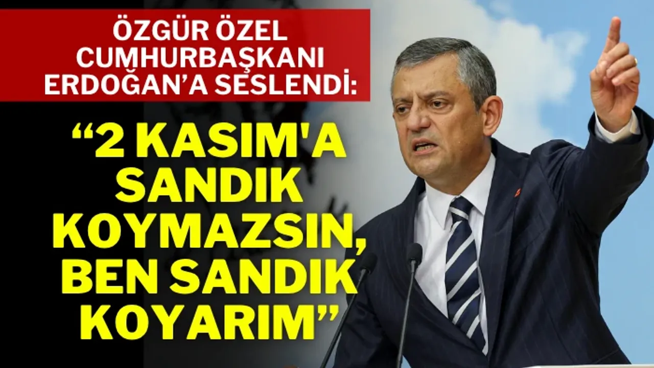 Özel, Cumhurbaşkanı Erdoğan'ın AK Parti'nin 1'inci parti olduğu yönündeki sözlerine ilişkin, "Sorun yok o zaman, hodri meydan. 2 Kasım Pazar. Madem 1'inci partisin, gel, aday da olabiliyorsun. Meclis'te oy vererek erken seçim kararını aldıracağız. Madem 1'inci partisin gel. Sen 1'inci parti olsan parende atarak sandığa gidersin. CHP 1'inci parti, her geçen gün farkı açıyor. Sen her geçen gün yetişemeyeceğin için, 'Akın koş çelme tak' diyorsun. Dün çelmenin adı İstanbul, bugün Adana, öbür gün Adıyaman ve Antalya. CHP'de yolsuzluk yapan varsa, hırsızlık yapan varsa, suça bulaşan varsa Allah da belasını versin, biz de vereceğiz belasını" ifadelerini kullandı.