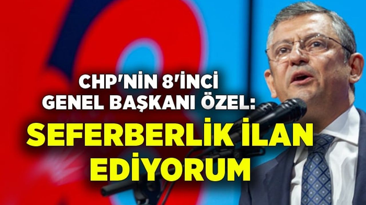 Kurultay salonundan CHP'nin 130 milletvekili ile el ele, omuz omuza çıktığını söyleyen Özel, "Salona il başkanlarımızla girdik. Bu salonda 81 il başkanımızla kol kola, omuz omuza çıkıyorum. İnsan sayıları çok konuşuldu. Ben seçim sonuçlarımı Sayın Başkanım müsaade ederse, 1366 delegemizi bana oy vermiş kabul ediyor, hepsini teşekkür ediyorum. Zorlu bir süreci geride bıraktık. Kolay değildi, büyük bir üzüntünün, travmanın arkasından umutsuzluğu umuda çevirmek, düşmüş omuzları dikleştirmek, yere bakan yüzleri havaya kaldırmak ve asılan suratları güldürmeye inandık. Arkadaşlarımızla inandık, sizlere inandık siz de inandınız umudu yükselttiniz. Bu son süreçte, bu salondan dışarıya hiçbir kırgınlık çıkarmayacağıma kendi adıma söz veriyorum. Benim süreç boyunca ve bugün istemeden kırdıklarım olduysa affola. Grubumuz pazartesi sabahından itibaren Plan Bütçe Komisyonu'ndaki mücadelesine büyük bir enerjiyle ve tek yumruk olarak devam edecek. Bizler de hep birlikte 5 ay sonraki çok önemli yerel seçim sürecine odaklanacağız. Buradan 1,5 milyon üyemize diyorum ki; 'Cumhuriyet'in 100'üncü yılında yaşadığımız büyük üzüntüyü telafi etmek, yüzleri güldürmek, ikinci yüzyıla zaferle girmek için örgütümüzde yarından itibaren seferberlik ilan ediyorum.' Durmayacağız, çalışacağız, omuz omuza çalışacağız. Elimizdeki belediyelerin tamamı yeniden kazanacak, yanlarına yenilerini ekleyecek ve hep birlikte büyük bir zaferi kazanacağız. Ben buna inanıyorum. Bunun için de sizlere güveniyorum" ifadelerini kullandı.