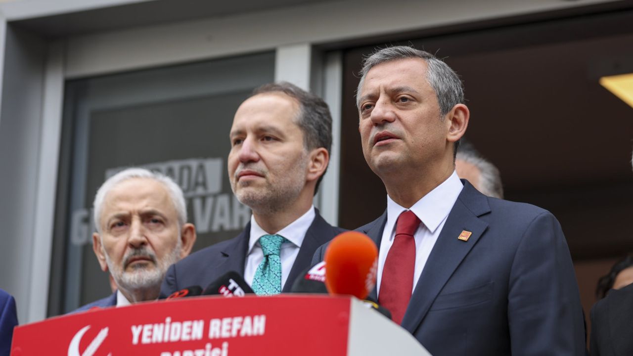 CHP Genel Başkanı Özel, Yeniden Refah Partisi Genel Başkanı Fatih Erbakan'ı parti genel merkezinde ziyaret etti. Basına kapalı gerçekleşen görüşme yaklaşık 1 saat sürdü. Özel ve Erbakan, görüşmenin ardından ortak açıklama yaptı. Özel, görüşme kapsamında Fatih Erbakan'a ve heyetine çeşitli konularda bilgi verdiklerini belirterek, "İlk gündem olarak Cumhurbaşkanı Sayın Erdoğan'ın deyimiyle 'silkelenme' sürecine karşı Cumhuriyet Halk Partisi'nin nasıl birlik ve beraberliğini koruyarak, cumhurbaşkanı adayını şimdiden belirleme ve bir erken seçim talebini yükseltme noktasında içinde bulunduğumuz süreç hakkında sayın genel başkanıma ve kıymetli heyetine bilgi verme, düşüncelerimizi paylaşma imkanı buldum. Bunun yanında devlet gücünün yanında siyasetin hoş kaldırmayacağı, nezaketsiz yöntemler kullanılarak milletvekili transferleri, belediye başkanı transferleri gibi siyaseten AK Parti'nin tarihine, 'Buna da tenezzül ettiler' denilebilecek yaklaşımları da karşılıklı olarak değerlendirme imkanı bulduk. Kutuplaşma siyasetiyle Türkiye'yi kendi gündemine çekmeye çalışan iktidara karşı, vatandaşın gerçek gündemi ile ilgilenmek durumundayız. Biz 23 Mart'ta cumhurbaşkanı adayımızı belirledikten sonra, vatandaşın gerçek sorunlarını çözecek tek şeyin seçim sandığı olduğunun bilinciyle büyük bir mücadelenin içine hep birlikte gireceğiz. Bu sürece ilişkin niyetimizi, kararlılığımızı da ifade etme imkanımız oldu" diye konuştu.