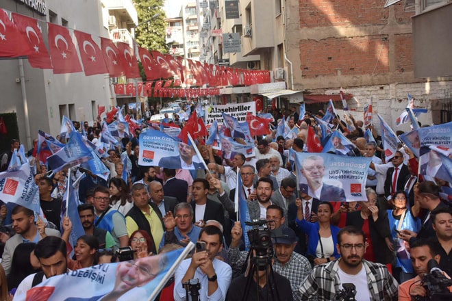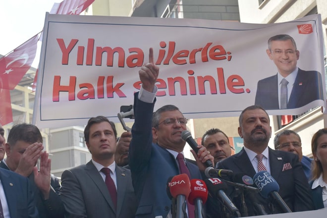 CHP Grup Başkanı ve genel başkan adayı Özgür Özel, partisinin 38'inci Olağan Büyük Kurultayı'na sayılı günler kala İzmir'de partililerle bir araya geldi. Özel, ziyaret ettiği CHP İzmir İl Başkanlığı önünde partililer tarafından meşalelerle karşılandı. CHP İzmir milletvekilleri Murat Bakan, Deniz Yücel, Ednan Arslan ve Gökçe Gökçen ile İl Başkanı Şenol Aslanoğlu ve birçok belediye başkanı ile çok sayıda partili programa katıldı. Özel için İl Başkanlığı önünde kürsü kuruldu. Kürsünün konulduğu sokak partililerce dolduruldu. Partililer, 'Değişim var', 'İzmir özgürleşecek' ve 'Özel günler göreceğiz çocuklar, motorları maviliklere süreceğiz' yazılı pankartlar taşıdı. Kalabalık, sık sık 'iktidar' ve 'değişim' sloganları attı.