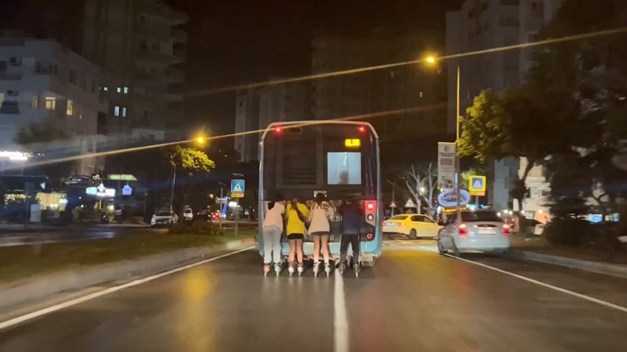 Muratpaşa ilçesindeki Işıklar ve Metin Kasapoğlu caddelerinde patenli 4 çocuk, KL 08 levhalı Lara ile Konyaaltı arasında sefer yapan halk otobüsünün arka paneline tutunarak uzun süre yolculuk yaptı. Hızlı olduğu görülen otobüsün arkasına tutunarak yaklaşık 2 kilometre giden gençlerin yolculuğu, görenleri korkuttu. Kendi canlarını ve trafiği tehlikeye sokan patenli gençler, diğer sürücülerin uyarılarına aldırış etmedi. Patenli gençler, bir süre sonra otobüsü bırakarak ara sokaklara girdi. Gençlerin patenli yolculuğu, sürücüler tarafından cep telefonuyla kayda alındı.