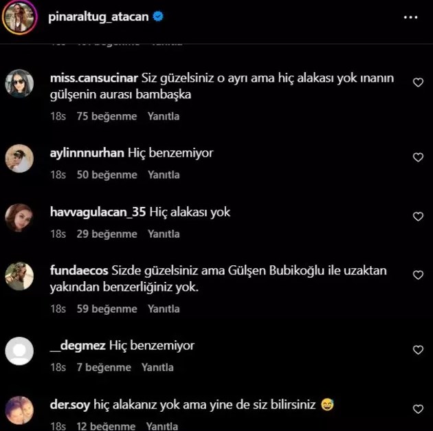 Gülşen Bubikoğlu, son olarak Pınar Altuğ'un paylaşımı ile yeniden merak konusu oldu. Yapay zeka ile Gülşen Bubikoğlu'na benzetilen Pınar Altuğ "Çok hayranım" dedi.