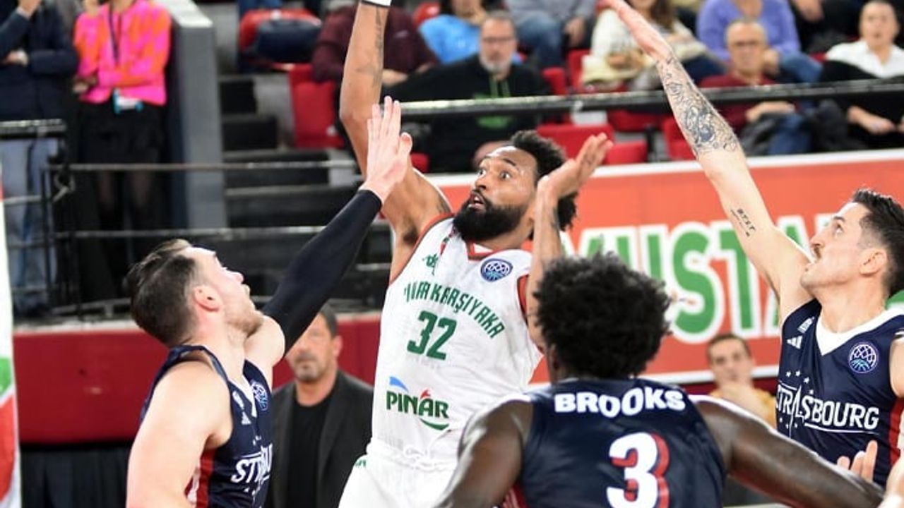 Strasbourg ile 15 Kasım'da Fransa'da oynadığı ilk maçı 15 sayı farkla kaybeden yeşil-kırmızılı ekip, rövanşı son saniyede Martin'in üçlüğüyle 15 sayı farkla kazanıp rakibini genel averajla geride bıraktı. Karşıyaka'da taraftarlar maç öncesi İsrail'in Gazze'ye yönelik saldırılarını protesto etmek için Atatürk'ün, "Yurtta sulh, cihanda sulh" sözlerinin yer aldığı koreografi yaptı. Grupta 4 maçta 3 galibiyete ulaşan İzmir ekibi, 13 Aralık'ta Almanya'da Oldenburg'un konuğu olacak.