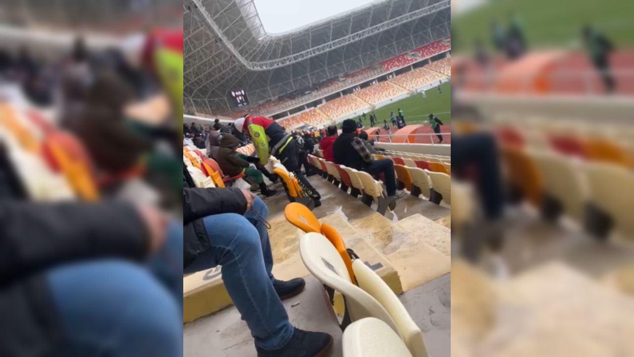 Taraftarın yanına giden polis memuru ayağından çorabını çıkararak, çocuğa giydirdi. Bu sırada Yeşilyurtspor taraftarı Mehmet Atabey, o anları cep telefonu kamerasıyla kaydetti.