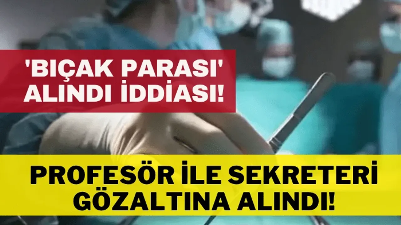 Soruşturma kapsamında; Prof. Dr. U.G. ile sekreterinin toplam 14 hastadan ameliyat için 'bıçak parası' adı altında çeşitli miktarlarda rüşvet aldığı öne sürüldü. Prof. Dr. U.G. ve sekreteri D.K., dün polis tarafından gözaltına alındı. Prof. Dr. U.G.'nin ev ve iş yerinde yapılan aramada; 900 bin TL nakit para ve hastalardan alınan ameliyat paralarının not alındığı değerlendirilen ajanda ele geçirildi. Prof. Dr. U.G. ve sekreterinin polisteki işlemlerinin sürdüğü bildirildi.