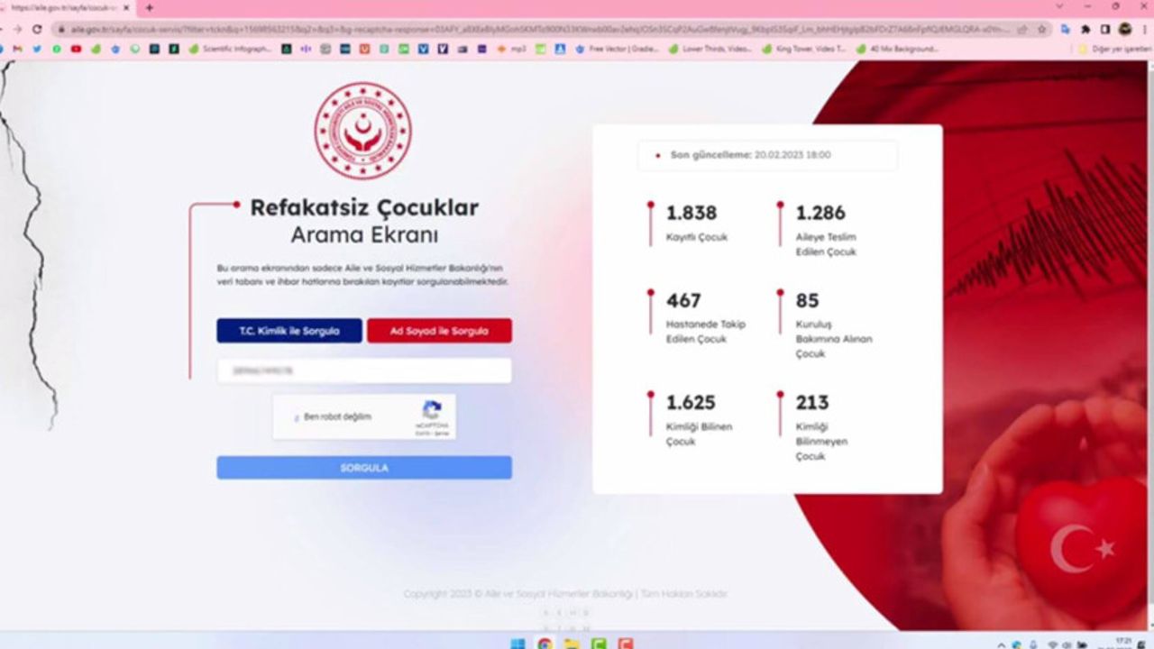 Bakan Yanık, yazılı açıklamasında, deprem sonrasında oluşturulan çağrı merkezi, ALO 183 ile sosyal medya takip birimi aracılığı ile gelen ihbar, bilgi, fotoğraf ve benzeri ayırt edici her türlü bilgi ve belgeyi kayıt altına aldıklarını, bu bilgileri açılan sorgu ekranında entegre ettiklerini ifade etti. Bugüne kadar elde edilen tüm verilerin yer alacağı sorgu ekranıyla daha hızlı ve etkin bir sonuç vereceklerini kaydeden Bakan Yanık, "Bu kapsamda vatandaşlarımız artık bakanlığımızın web sitesinde yer alan sorgu ekranından gerekli bilgileri girerek rekafatçisi olmayan çocuklara yönelik bilgilere hızlı bir şekilde ulaşabilecek" ifadelerini kullandı.
