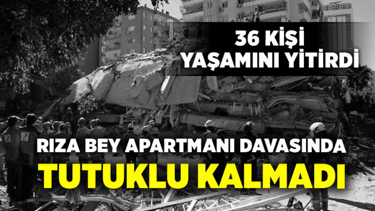Ege Denizi'nde Seferihisar açıklarında 30 Ekim 2020'de meydana gelen, 115 kişinin hayatını kaybettiği 6.6 büyüklüğündeki depremde Bayraklı ilçesindeki 8 katlı Rıza Bey Apartmanı'nda 36 kişi yaşamını yitirdi, 17 kişi de yaralandı. Depremin ardından başlatılan soruşturmada 4'ü tutuklu 9 kişi hakkında, İzmir 5'inci Ağır Ceza Mahkemesi'nde, 'bilinçli taksirle birden fazla kişinin ölümüne ve yaralanmasına neden olmak' suçundan 20 yıla kadar hapis cezası istemiyle dava açıldı. Yargılama sırasında 2 sanık daha tahliye edildi.