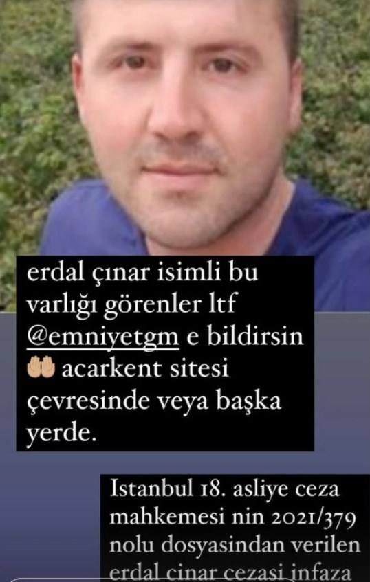 Ece Erken bir sonraki paylaşımında da "Erdal Çınar isimli bu varlığı görenler lütfen emniyete bildirsin" dedi.
