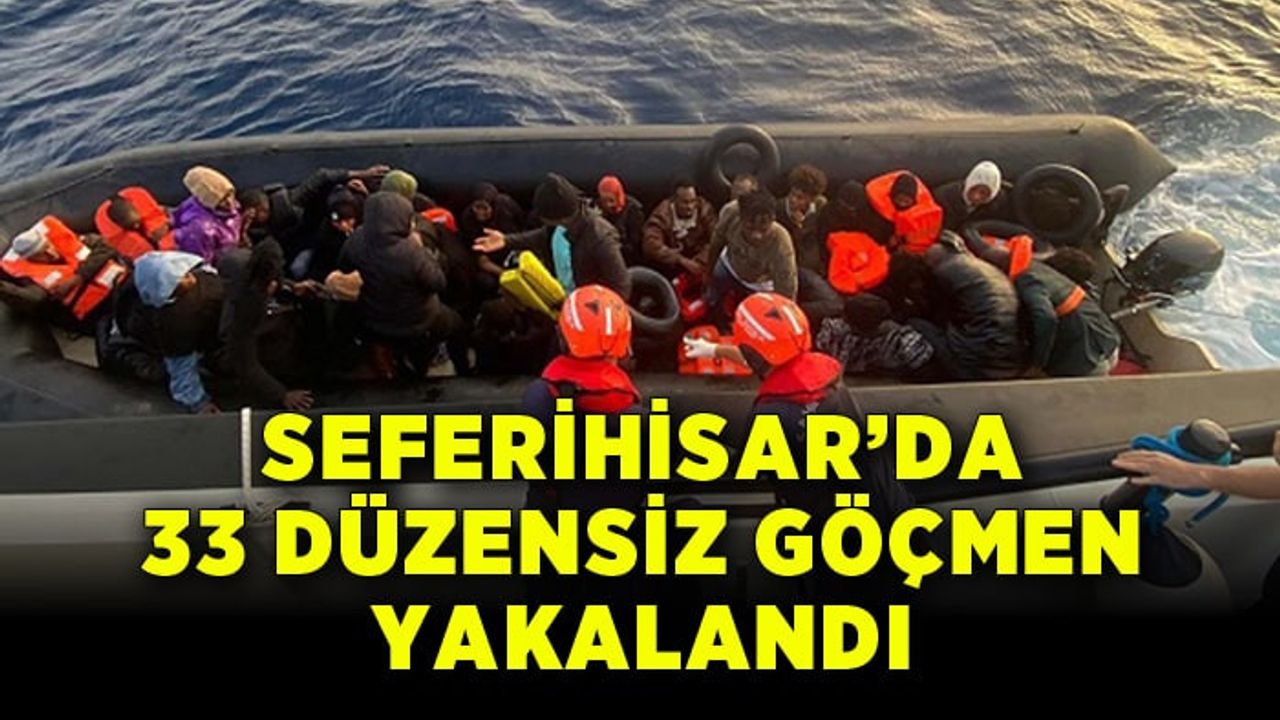 İZMİR'in Seferihisar ilçesi açıklarında, lastik bot içerisinde aralarında 1 çocuğun da bulunduğu 33 düzensiz göçmen, sahil güvenlik ekipleri tarafından yakalandı.