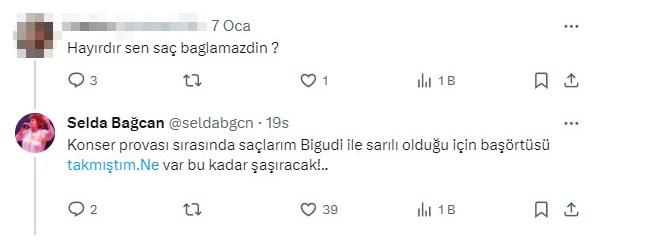 Usta sanatçının daha önce de bu tarz kombinle provaya çıktığı göze çarptı. Birçok kişi Bağcan'ın sanatsal kimliğini ve özgün tarzını yansıtması nedeniyle kıyafetini beğenirken, kimileri de şaşkınlıklarını dile getirdi. Selda Bağcan takipçisinin yaptığı yoruma "Konser provası sırasında saçlarım bigudi ile sarılı olduğu için başörtüsü takmıştım. Ne var bu kadar şaşıracak" diye yanıt verdi.