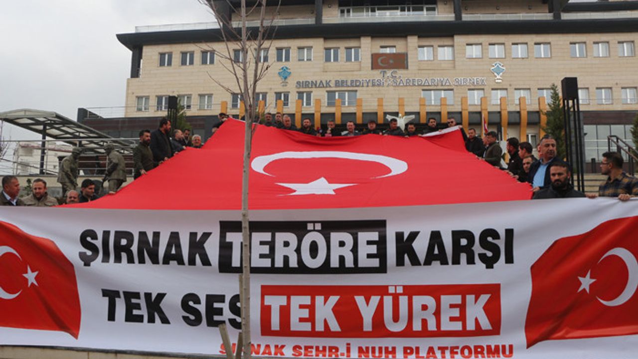 Irak’ın kuzeyinde sürdürülen Pençe-Kilit harekatı bölgesinde son 2 günde 12 askerin şehit olmasının ardından Şırnak’ta Şehri Nuh Platformu öncülüğünde bir araya gelen sivil toplum kuruluşları terör örgütü PKK’ya tepki gösterdi. Öğle namazının ardından Geylani Camisi önünde toplanan kalabalık ellerinde dev Türk bayrağıyla ve ‘Şırnak teröre karşı tek ses, tek yürek’ pankartı açtı. Kalabalık, sık sık "Şehitler ölmez vatan bölünmez", "Kahrolsun PKK", "Teröre karşı omuz omuza" sloganları attı.