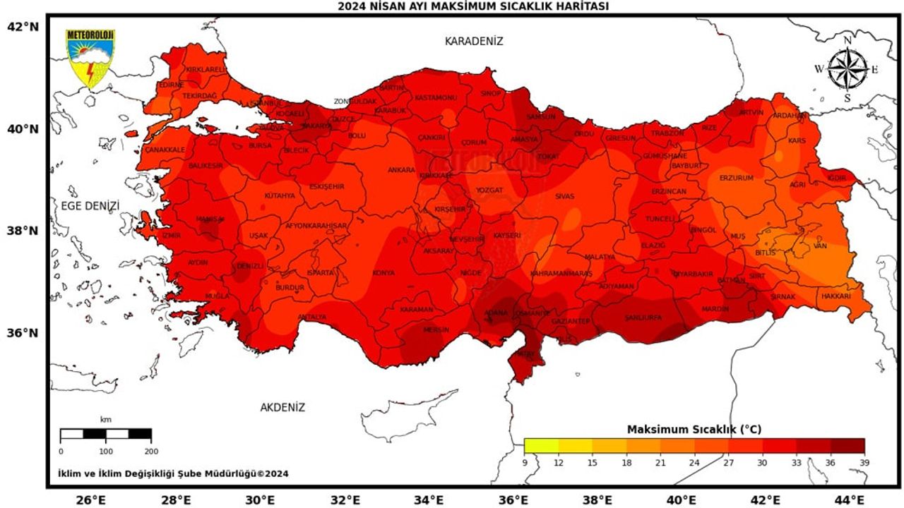 Meteoroloji Genel Müdürlüğü 2024 Yılı Nisan Ayı Ortalama Sıcaklıklarının 1991-2020 Normallerine Göre Mukayesesi Raporu açıklandı. 2024 yılı nisan ayında ortalama sıcaklıklar Türkiye genelinde mevsim normallerinin üzerinde gerçekleşti. 1991-2020 normalleri nisan ayı ortalama sıcaklığı 12,3 derece olup, 2024 yılı nisan ayı sıcaklığı ise 16,6 derece olarak gerçekleşti. 2024 yılı nisan ayı, 1991-2020 normalleri nisan ayı ortalamasının 4,3 derece üzerinde yaşandı. 2024 yılı nisan ayı, son 53 yılın en sıcak nisan ayı olarak kayıtlara geçti.