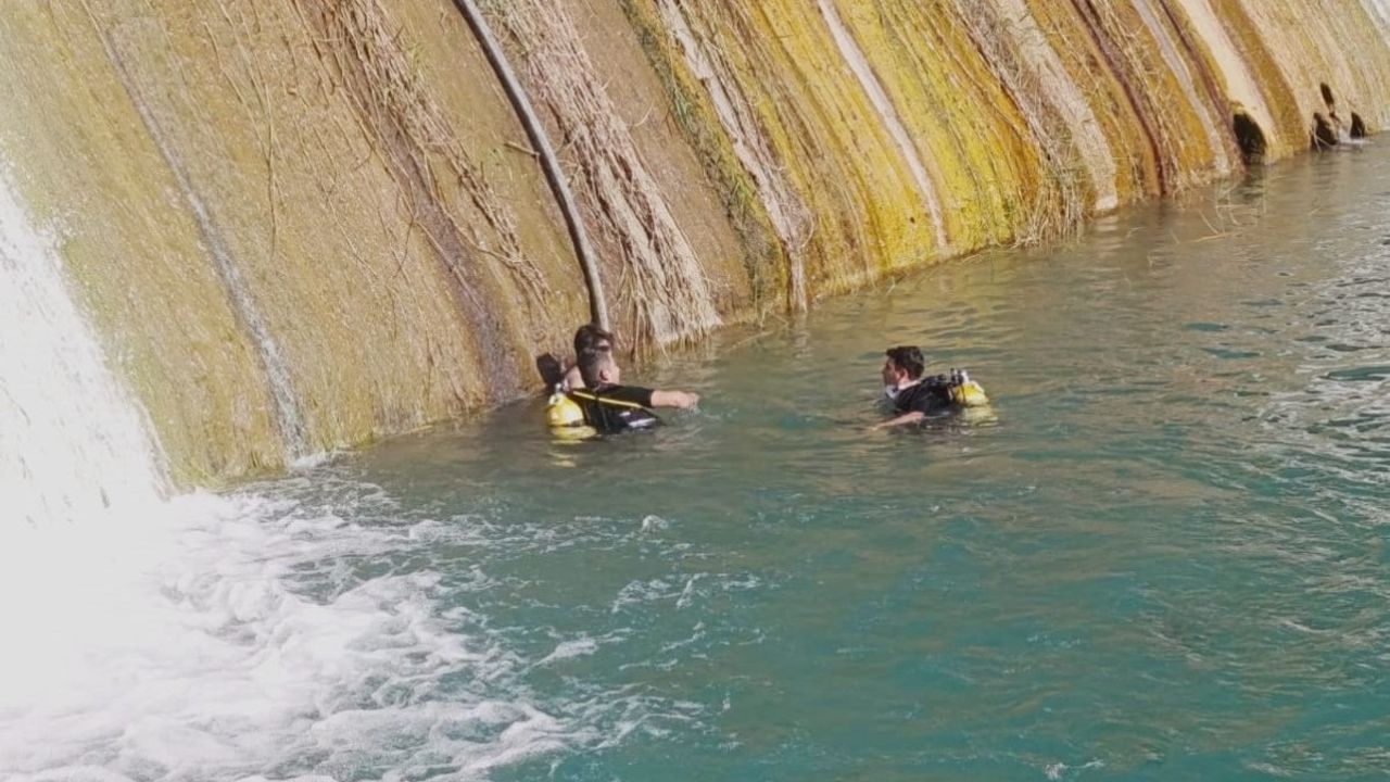 Sulama havuzu bendinde mahsur kaldı, dalgıçlar kurtardı
