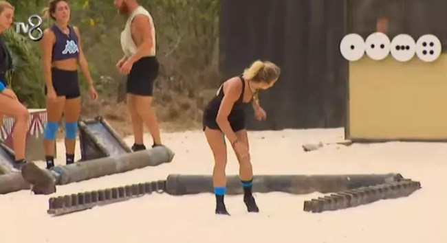 Atışlarda öne çıkan ve Pınar'ı yenen Seda'nın sevinci ve hareketleri sosyal medyayı salladı. Kumu ezerek tekme atan ve sonunda "Pislik" diyen Seda'ye tepki ve destek bir aradaydı.
