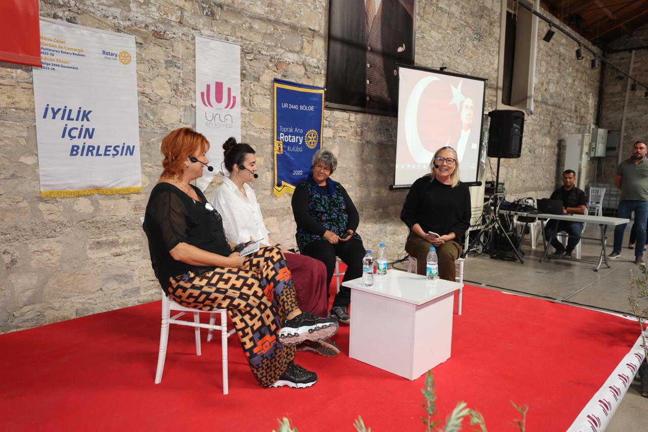 Etkinlik, Toprak Ana Rotary Kulübü Başkanı Prof. Dr. Nezih Özdemir ile Urla Ziraat Odası Başkanı Muharrem Uslucan’ın açılış konuşmalarıyla başladı. Urla Belediye Başkanı Selçuk Balkan konuşmasında, Birleşmiş Milletler Kadın Örgütü’nün 2025 bildirgesinde yer alan “Kırsaldaki kadınlar, dirençli bir geleceği inşa eden öncülerdir” ifadesini hatırlatarak, bu gerçeğe rağmen dünya genelinde tarımsal işletmelerin yalnızca %20’sinin kadınlar adına kayıtlı olduğuna dikkat çekti.