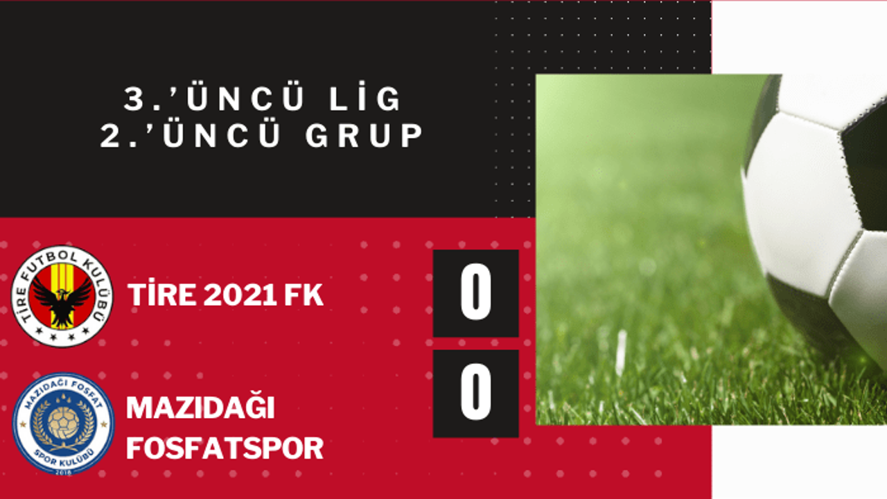 3’üncü Lig 2’nci Grup’ta 21’inci hafta erteleme mücadelesinde Play-Off hedefleyen iki takımdan Tire 2021 FK evinde Mazıdağı Fosfatspor’la 0-0 berabere kaldı.