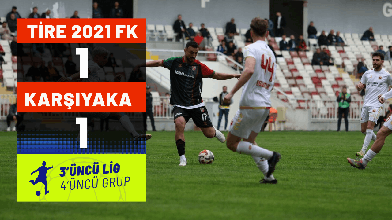 Tire 2021 FK ise 37 puana yükselerek sezonu 9’uncu sırada tamamladı. Maçın ilk yarısı golsüz eşitlikle sona ererken, ev sahibi Tire 2021 maçın 54’üncü dakikasında Siraç’ın penaltı golüyle öne geçti: 1-0. Konuk Karşıyaka 87’nci dakikada Murat Arslan ile rakibine karşılık verdi: 1-1.