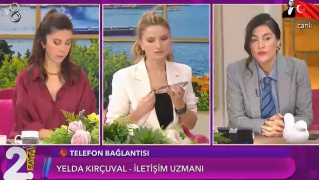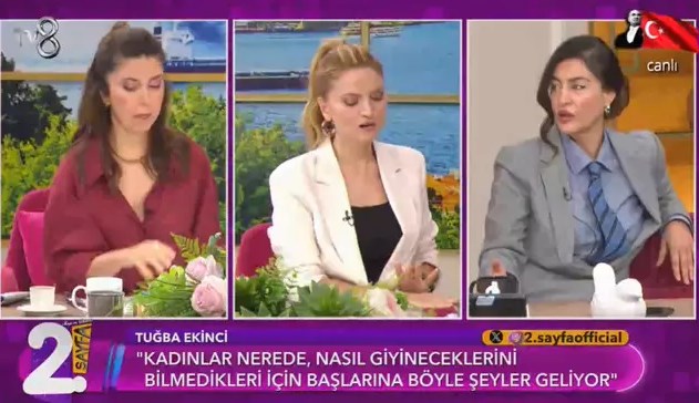 Tuğba Ekinci'nin bu açıklamalarına dayanamayan İletişim Uzmanı Yelda Kırçuval ise canlı yayına bağlanıp 'Hiçbir kadın kıyafetinden dolayı ne şiddeti ne de tacizi hak etmiyor' açıklamasında bulundu.