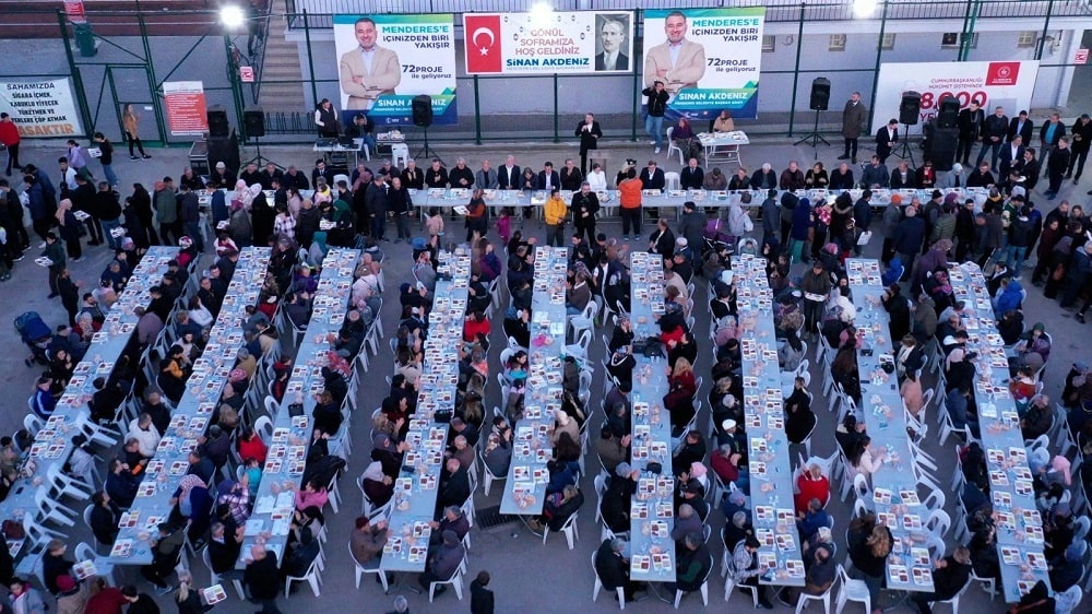 Cumhur İttifakı Menderes Belediye Başkan Adayı olarak her gün büyük kitlelerle buluşan Sinan Akdeniz; şöyle konuştu; "Bu gönül sofralarını inşallah Nisan'dan sonra daha çok kuracağız. Birlikte kazanacak, birlikte bölüşecek, birlikte çoğaltacağız. Menderesli hemşehrilerimin her gittiğim yerdeki teveccühüne layık olmaya çalışacağım. Heyecanım büyük. 1 hafta sonra; görev ve yetkim olduğu takdirde bu iftar sofralarının bereketini tüm ilçeme yaymak için çalışacağım. Sözünü verdiğim her projeyi hayata geçirmek için çalışacağım. Kapı da makam da Menderes halkının. Gerekirse oturmayacak. Uyumayacağım. Bana güvenen hiç kimseyi pişman etmeyeceğim."